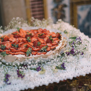 Suspiro de chocolate, natas, morangos e frutos silvestres